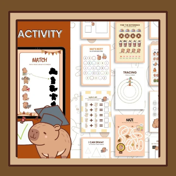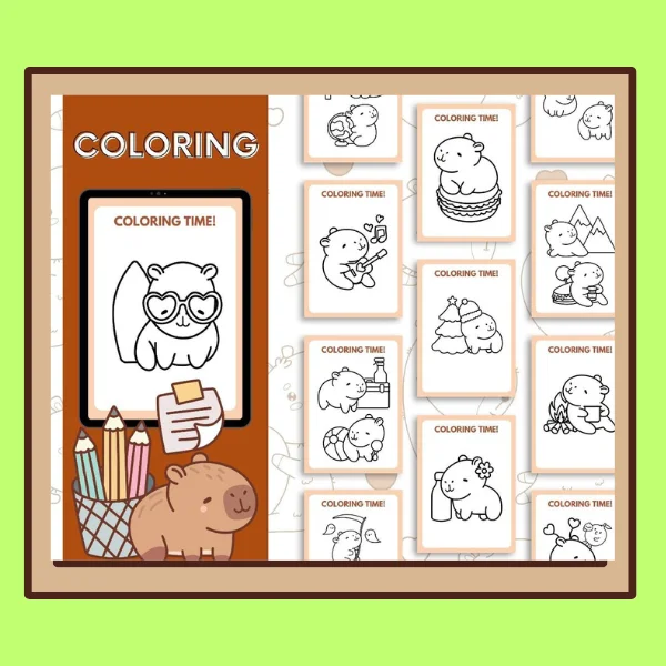Transforma la rutina de tu hijo con adorables capibaras acompañado cada página, los niños podrán desarrollar habilidades y creatividad mientras pintan y juegan.